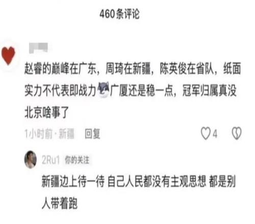 在北京男篮不敌青岛的比赛中,赵睿最后时刻两罚不进,彻底终结比赛悬念。值得一提的是,赛后赵睿又惹麻烦,在某音评论发出了及其离谱的言论,直接把自己放在了与新疆人民的对立面,有球迷直言,赵睿已经触及了底线,作为中国男篮国家队队长,说出了这样逆天的话,很可能会被中国男篮国家队开除!但昨天晚上篮协名单公布之后,赵睿的名字赫然在列。尽管有些意外,但仔细想想,其实也在情理之中。从目前国家队的后卫线看,赵睿还真是不可或缺的球员,没有之一。